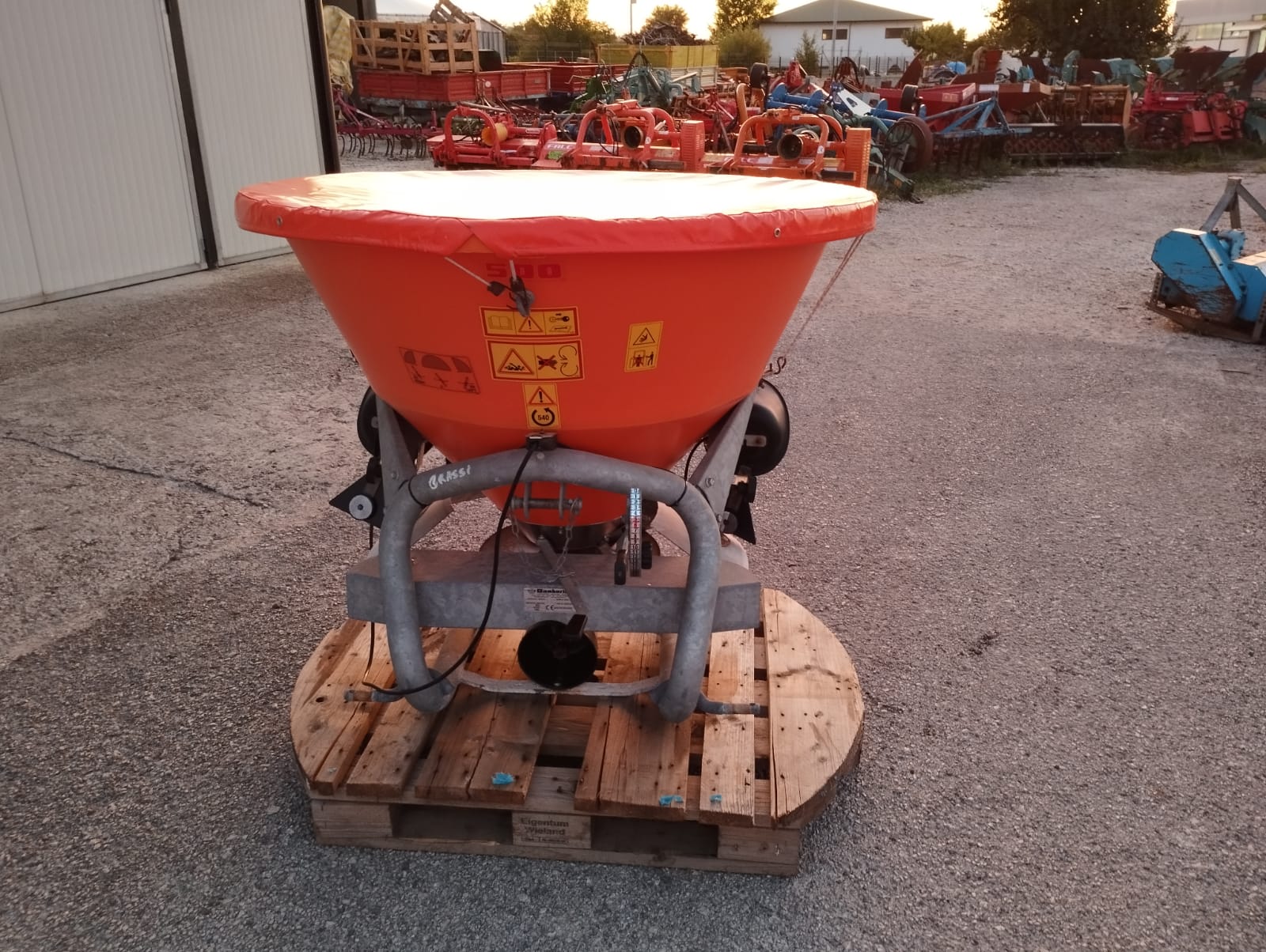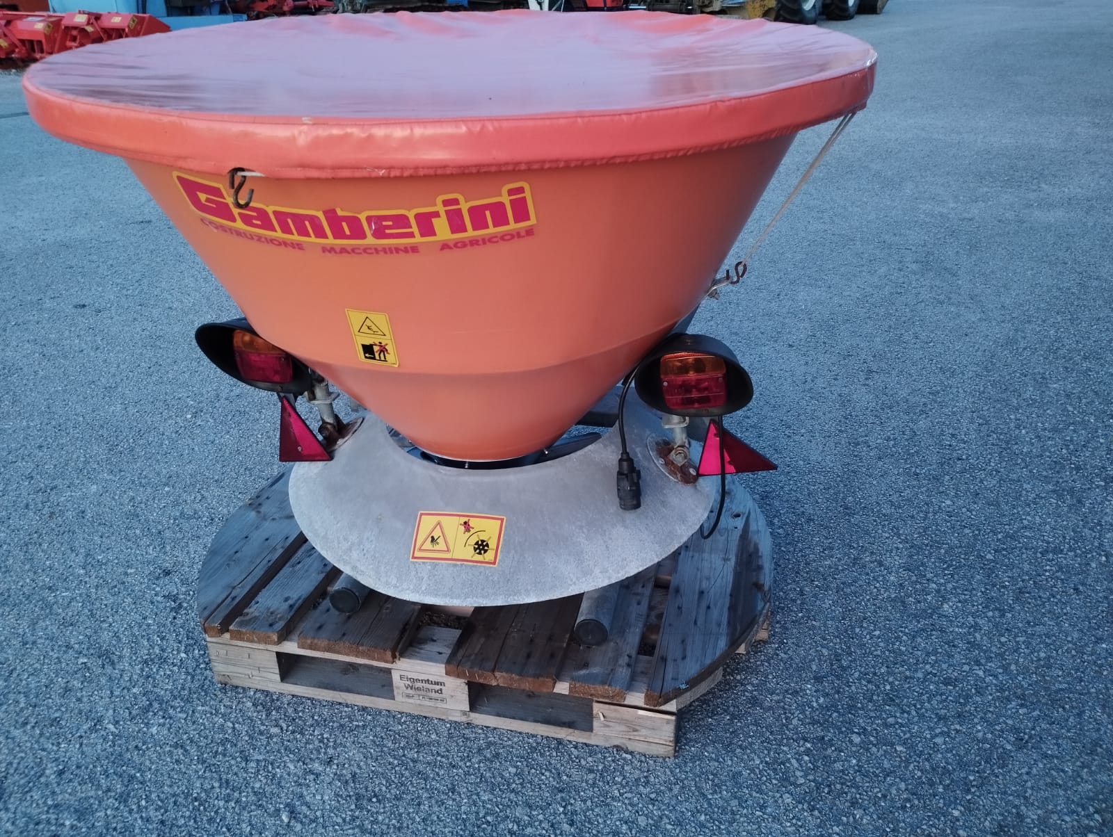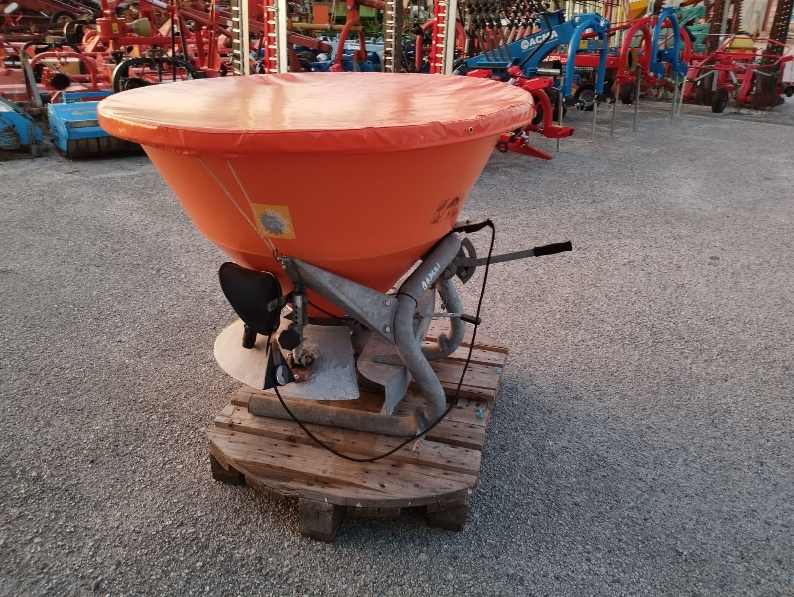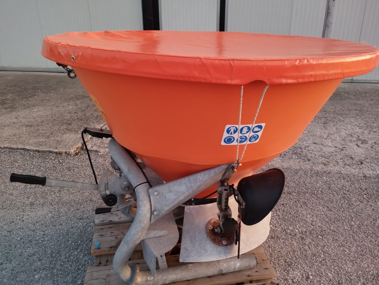 Tramoggia biconica e disco distributore, con cardano, griglia filtrante e telone